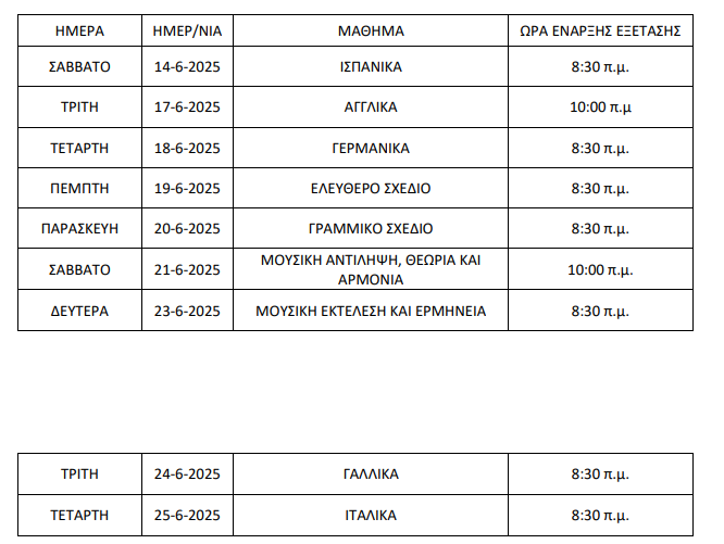 Εξετάσεις για όλη την Περιφέρεια Θεσσαλίας από 29-05-2025 μέχρι και 16-06-2025,