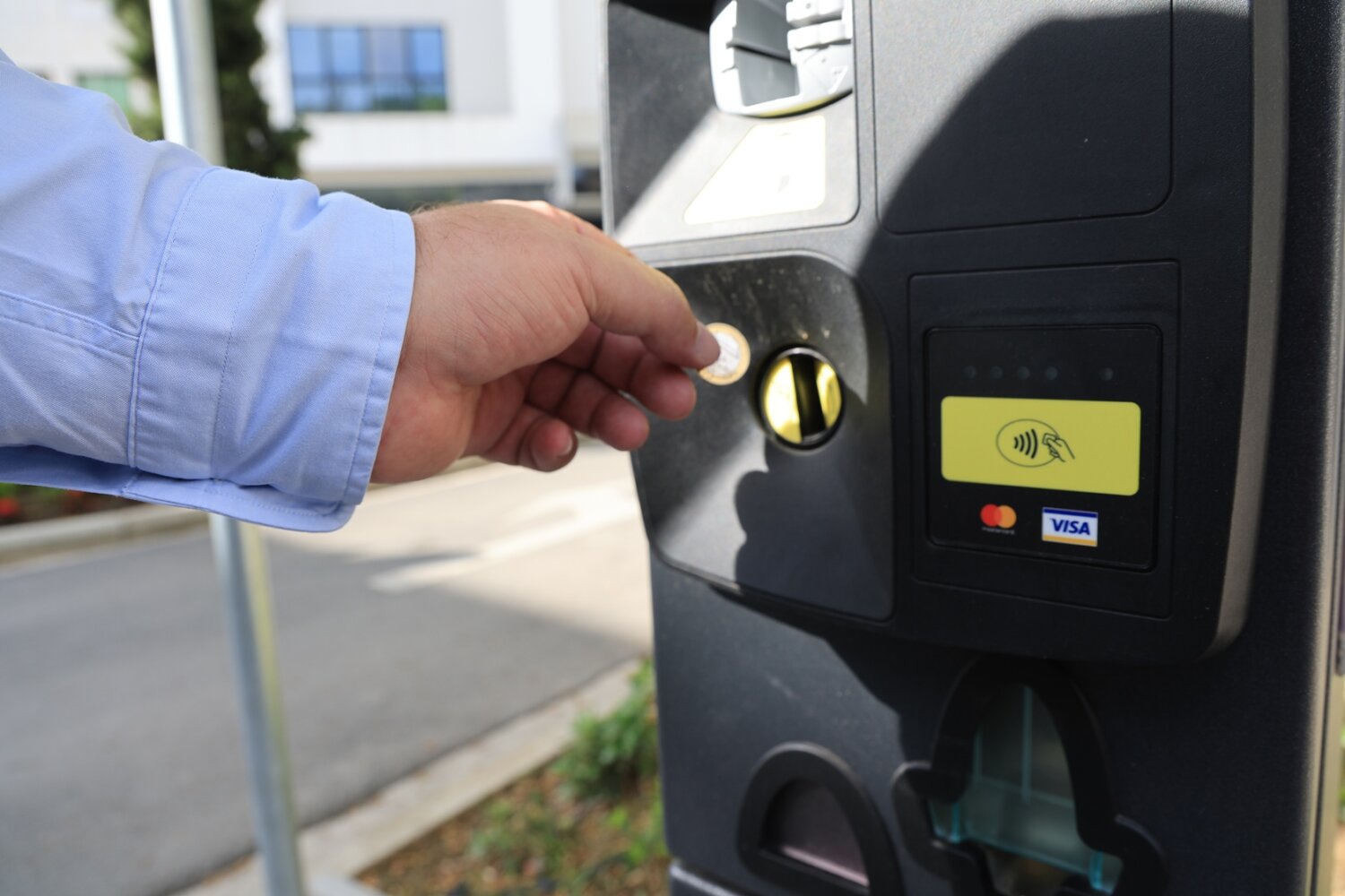 β) Με τη χρήση των ειδικών μηχανημάτων αυτόματης πληρωμής που είναι εγκατεστημένα σε 30 σημεία στην περιοχή του ΣΕΣ.