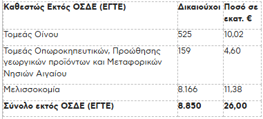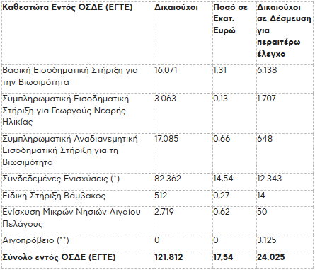 (**)Σημειώνεται ότι ειδικά για την ενίσχυση Αιγοπρόβειου, αριθμός 34.617 αιτήσεων ποσού 10 εκατ. ευρώ περίπου, εκτιμάται ότι θα πληρωθούν εντός Νοεμβρίου 2025, καθώς απαιτείται περαιτέρω διασταύρωση της παραγωγής γάλακτος σε σχέση με τα στοιχεία του myDATA.